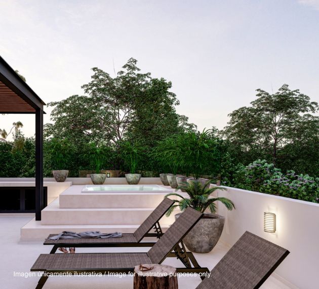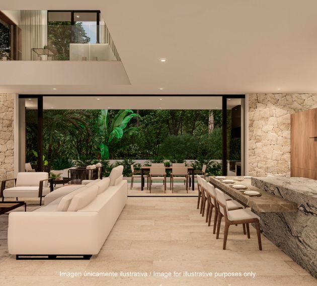Aliada is composed of author villas of contemporary tropical inspiration, where the priority is natural light and interior-exterior integration. The spaces are organized in functional floors with open social areas, integrated kitchens and large windows that open onto private terraces and gardens. The palette of materials combines stone, wood and neutral tones that bring warmth, while details in ironwork and vegetation frame each villa, creating an intimate, elegant and perfectly thought to live or invest in the Mexican Caribbean.